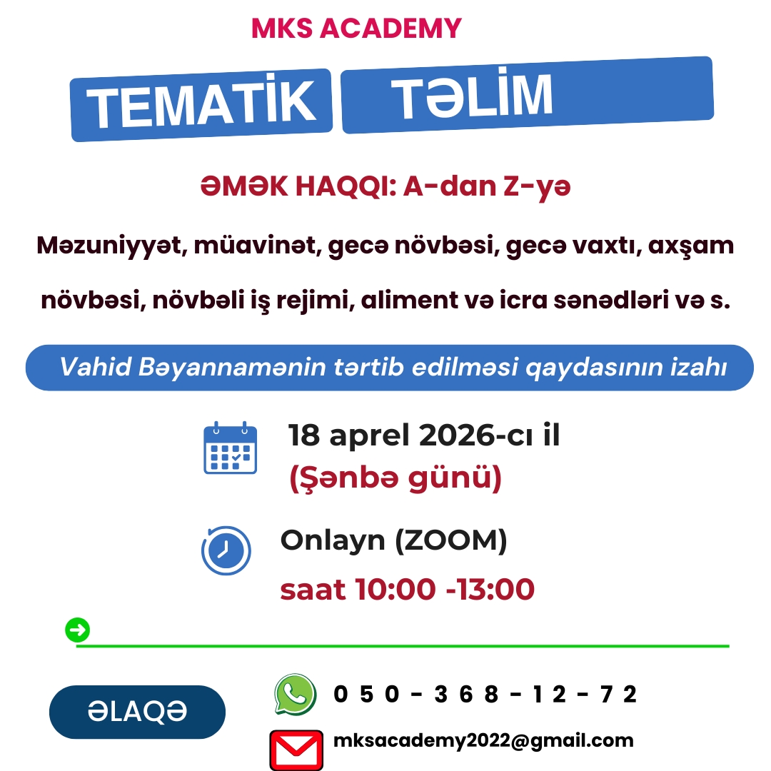 Sərbəst auditor Altay Cəfərovun müəllifi olduğu və satışı davam edən "Əmək Münasibətləri: A-dan Z-yə" kitabından seçmə Praktikada az rast gəlinən məsələlərdən biri də son...