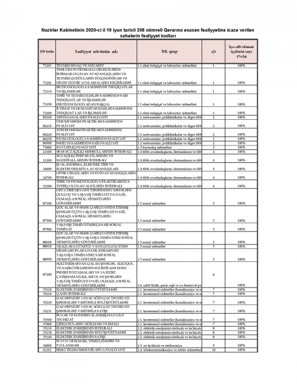 Diqqət! Komendant saatı müddətində icazə verilən iş sahələrin siyahısı açıqlandı